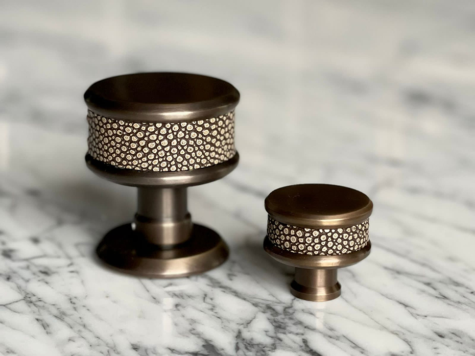 Дверная ручка-кноб на круглой розетке Oliver Knights Shagreen DK 57мм матовая бронза