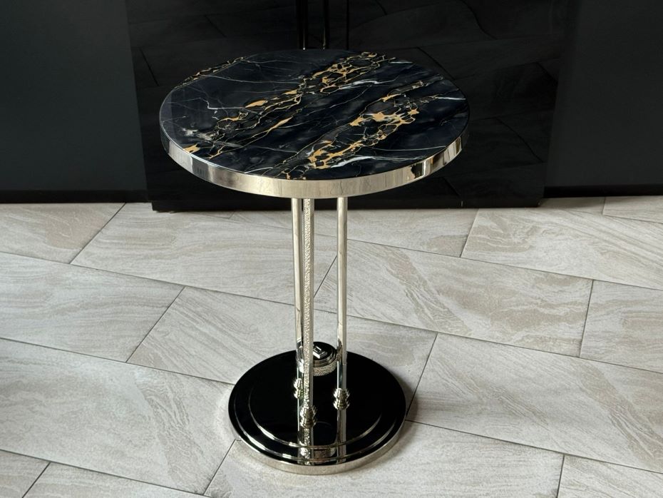 Столик кофейный FURNITEK Ar-Deco FG-075 круглый полированный никель
